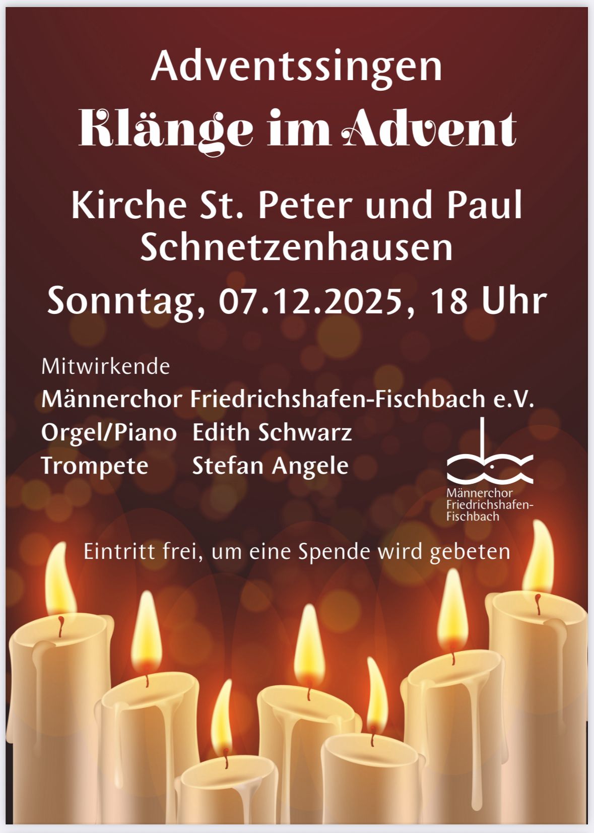 Datum Dez. 07 2025 Vorbei! Uhrzeit 18:00 - 20:00 Adventssingen in St. Peter und Paul Schnetzenhausen Teile diese Veranstaltung + Zu Google Kalender hinzufügen + iCal / Outlook export